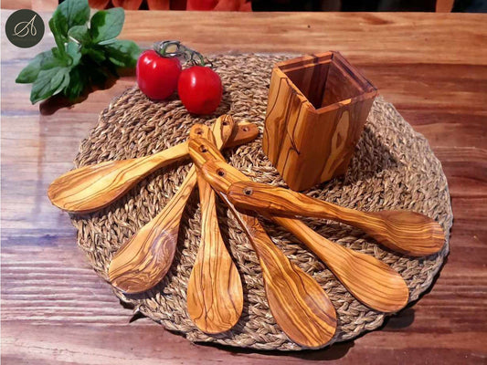 Wooden Utensils Set, Olive Wood Spoon Holder with 6 spoons 20 cm, kitchen utensils, cookware, handmade, decor, gift, restaurant
