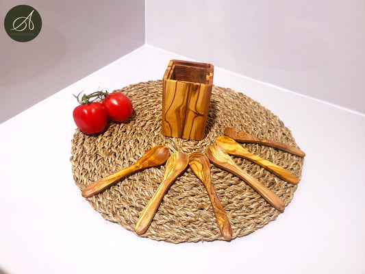 Wooden Utensils Set, Olive Wood Spoon Holder with 6 small spoons 13 cm, kitchen utensils, cookware, handmade, decor, gift, restaurant